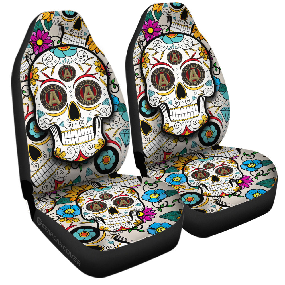 Atlanta United FC Car Seat Covers Custom Sugar Skull Car Accessories