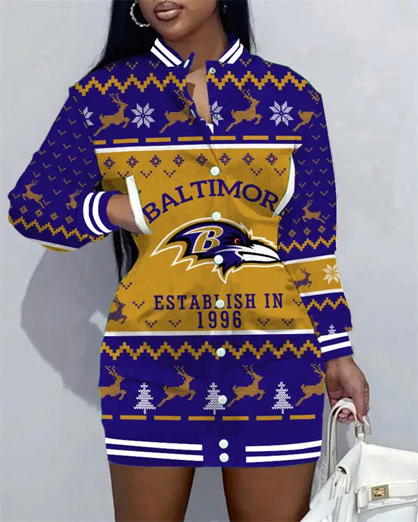 Baltimore Ravens Women Button Down Jacket Dress AZBTBDJD000132