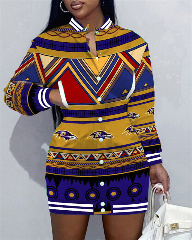 Baltimore Ravens Women Button Down Jacket Dress AZBTBDJD000314