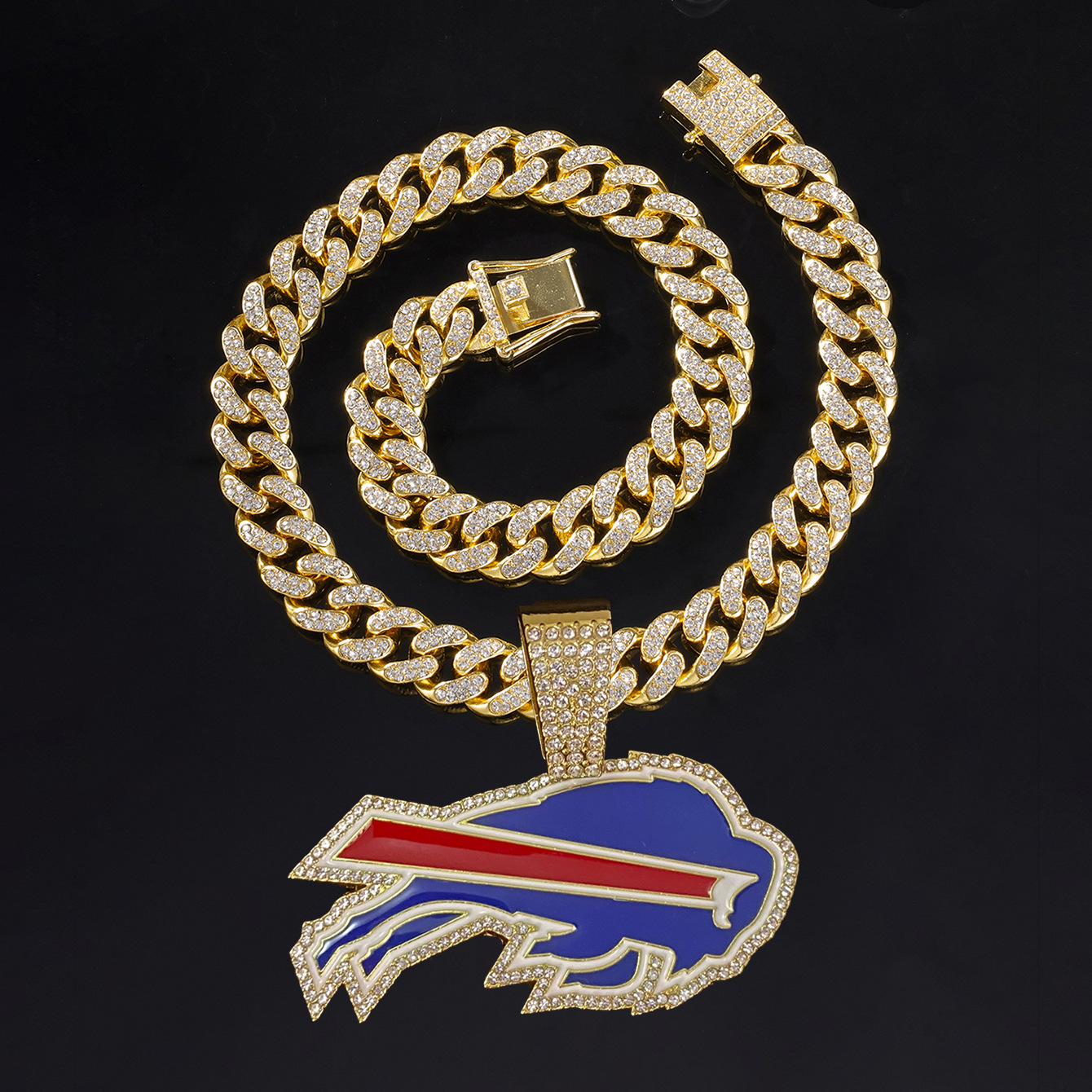 Buffalo Bills Hip Hop Iced Out Bling Pendant Cuban Chain