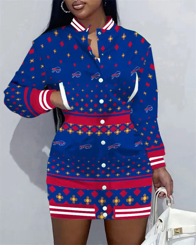 Buffalo Bills Women Button Down Jacket Dress AZBTBDJD000180