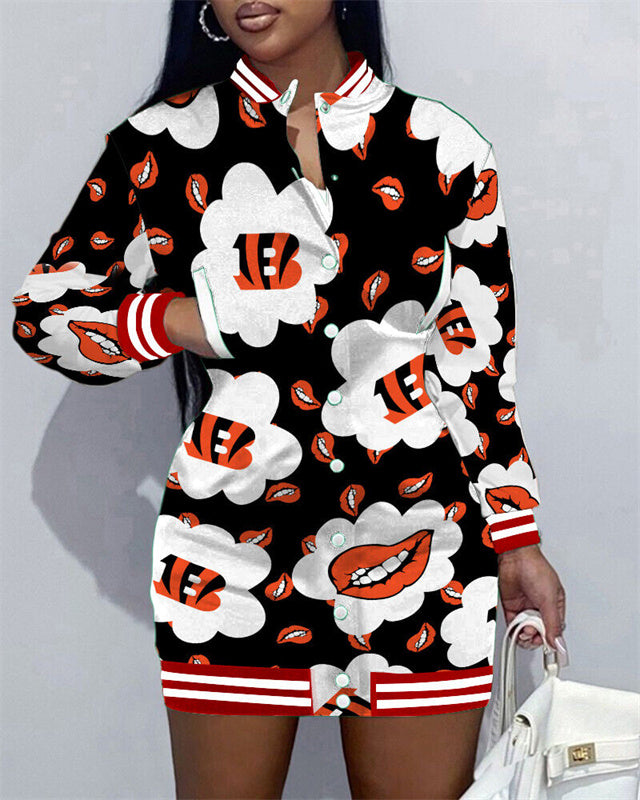 Cincinnati Bengals Women’s Button Down Jacket Dress – Game Day Chic with Team Spirit!