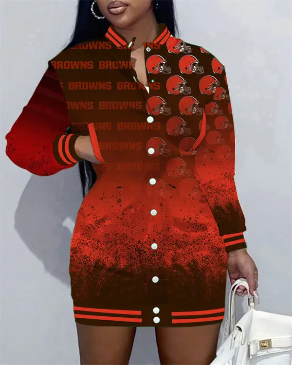 Cleveland Browns Women’s Button Down Jacket Dress – The Perfect Blend of Style & Team Spirit!