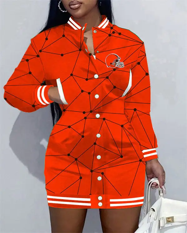 Cleveland Browns Women’s Button Down Jacket Dress – The Perfect Blend of Style & Team Spirit!