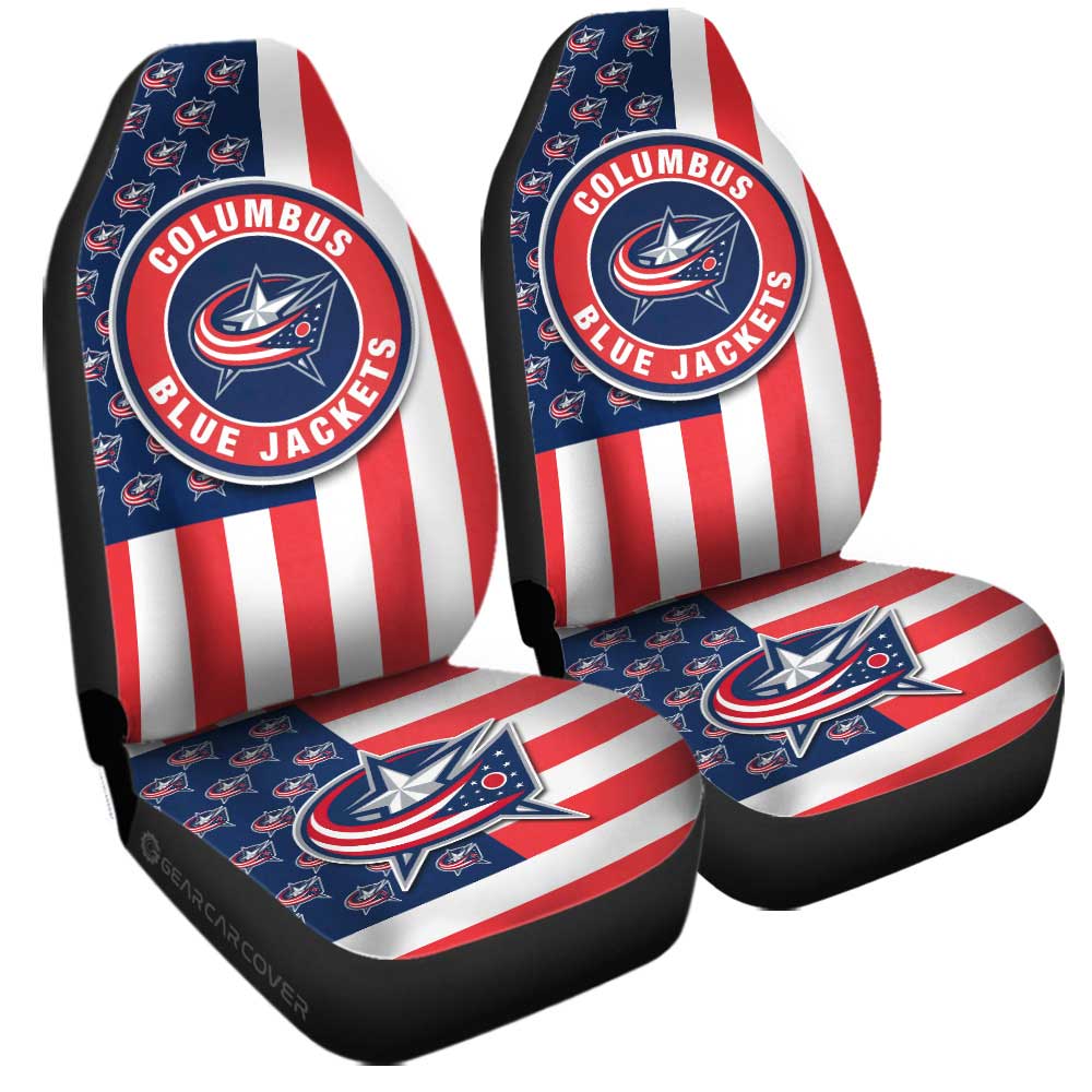 Columbus Blue Jackets Car Seat Covers Custom US Flag Style
