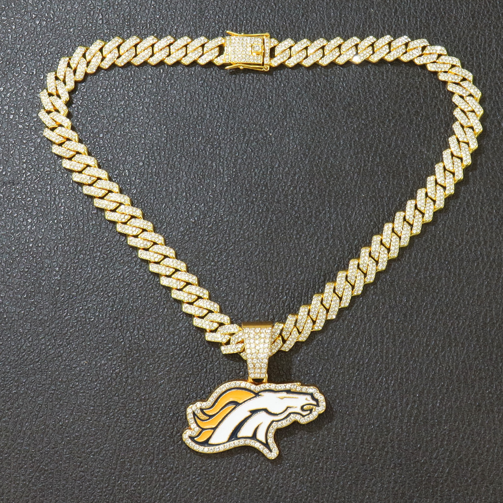 Denver Broncos Hip Hop Iced Out Bling Pendant Cuban Chain
