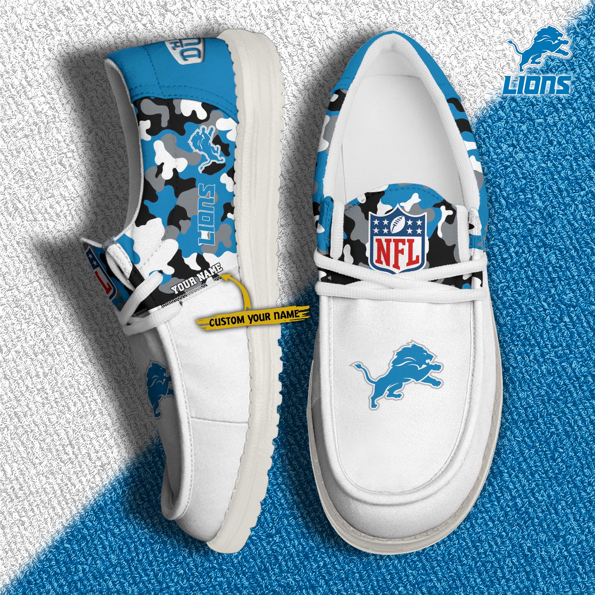 Detroit Lions Football H-D Canvas Loafer Shoes Custom Your Name, Sport Shoes For Fan, Fan Gifts EHIVM-04031614N