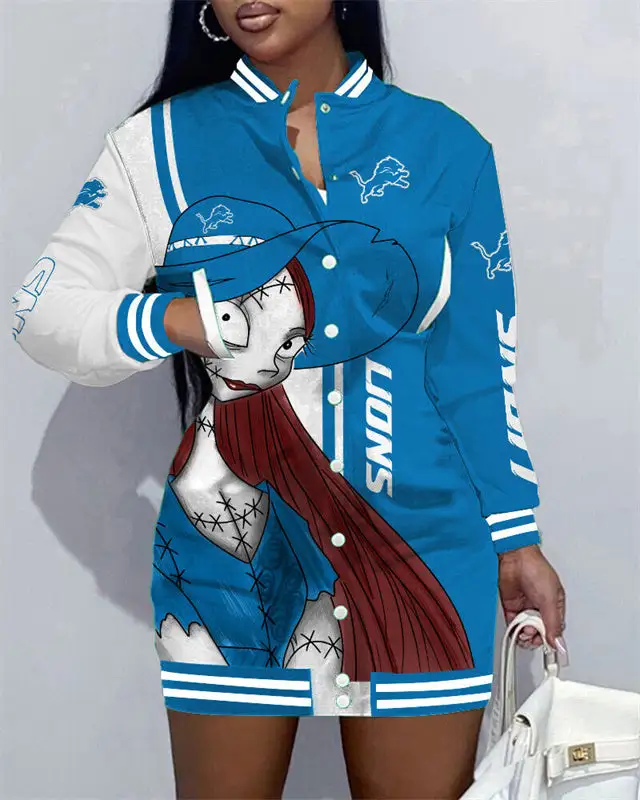Detroit Lions Women Button Down Jacket Dress AZBTBDJD000185
