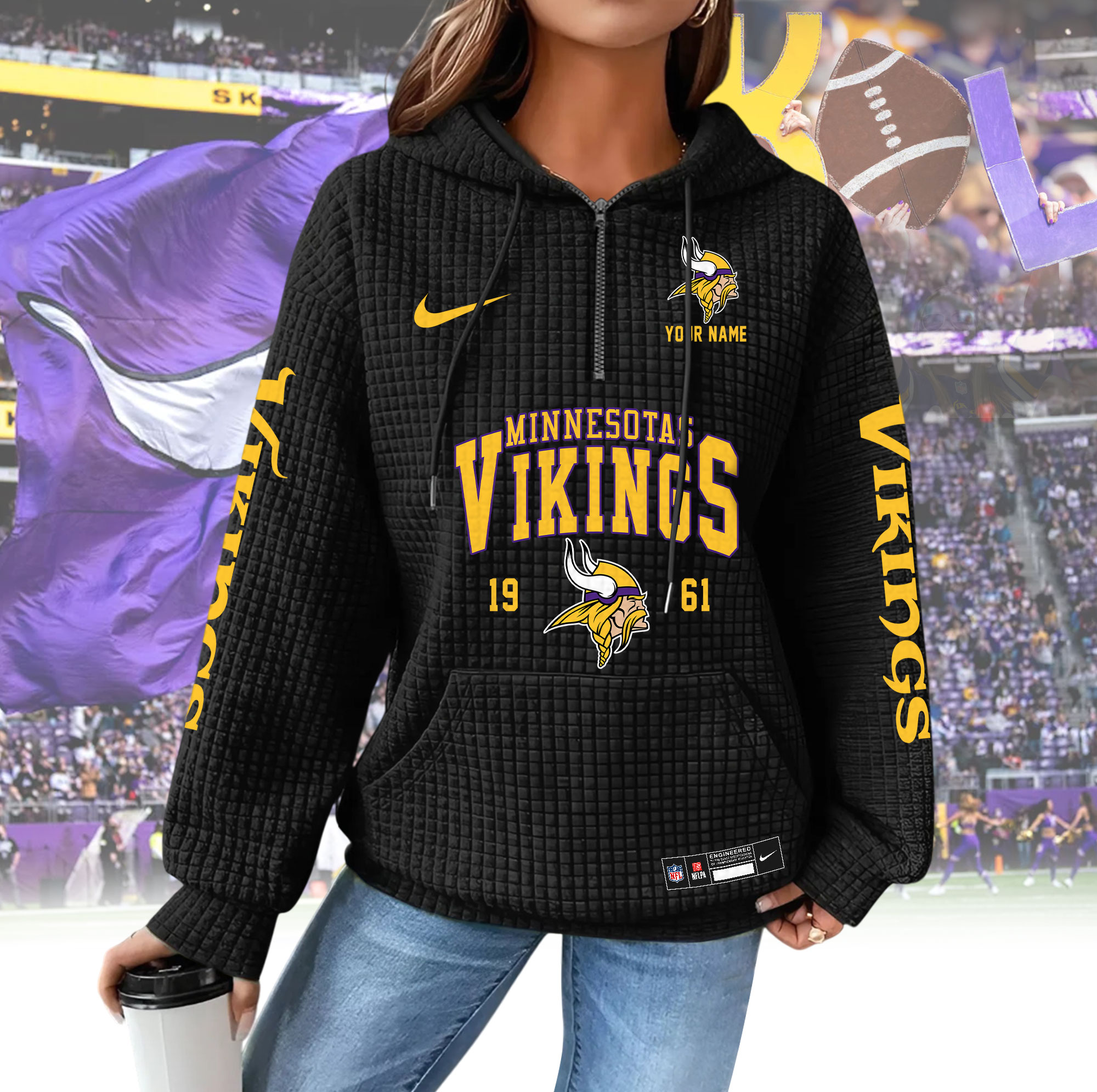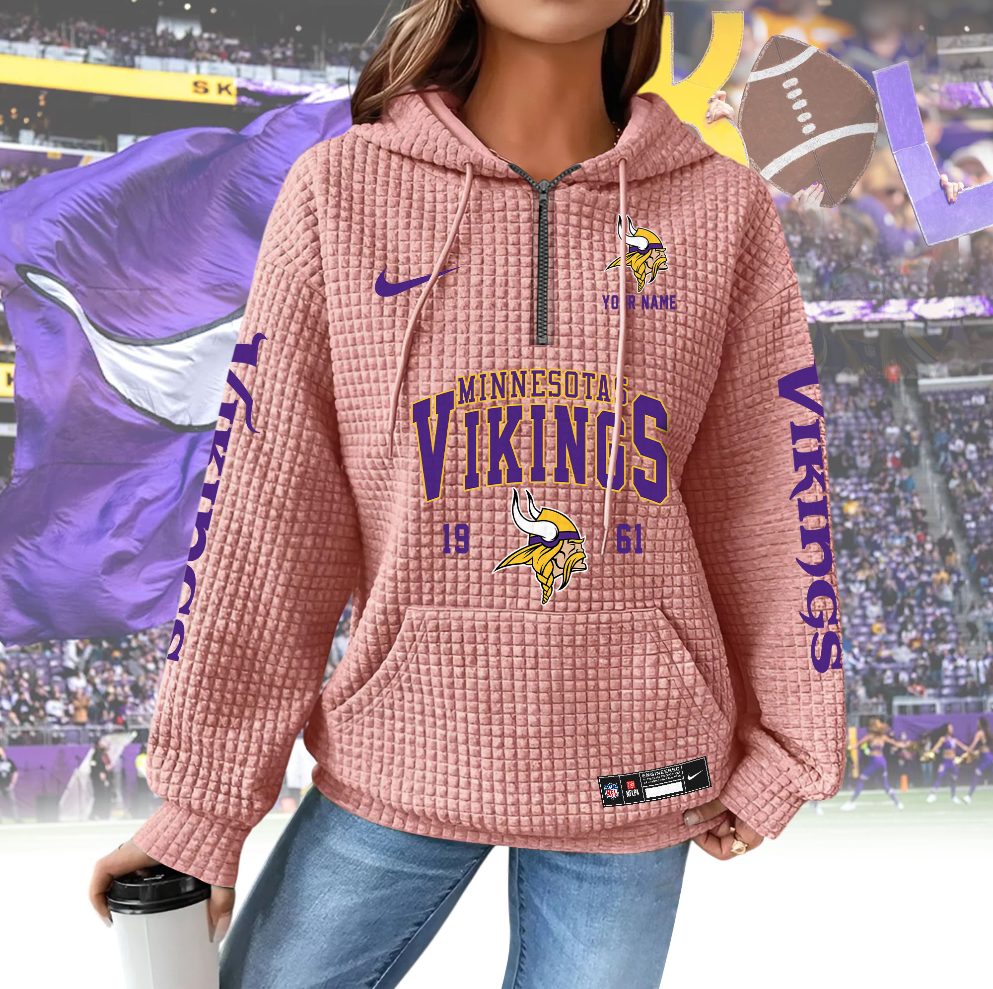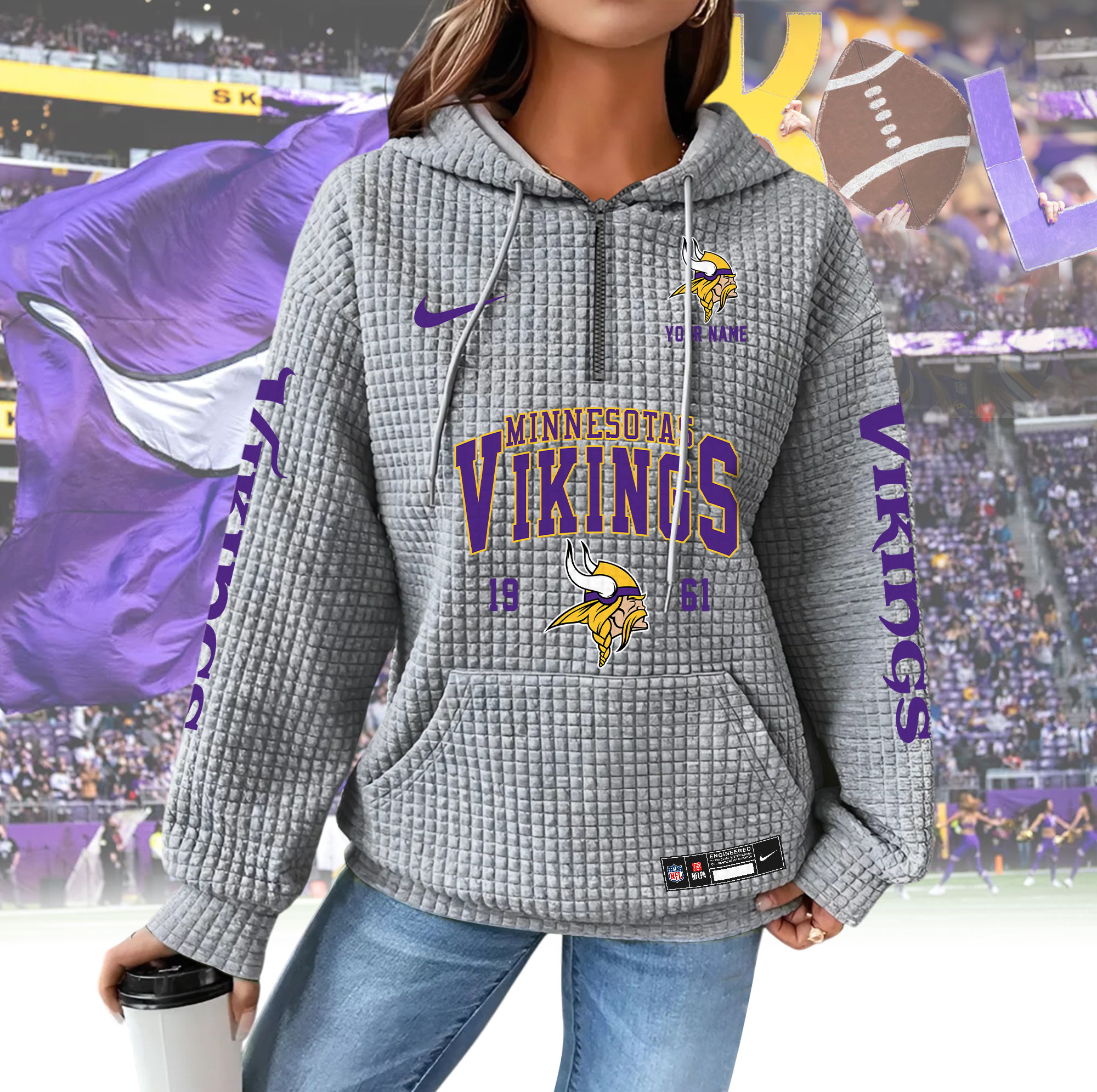 To make your hoodie truly unique, customers can add a custom name to be printed directly on the hoodie, creating a personalized look or a meaningful gift for any NFL fan. Whether you’re buying for yourself or a loved one, the HBZNVM024VIK0409 Woman Hoodie is a stylish, comfortable, and thoughtful choice for game day and beyond.