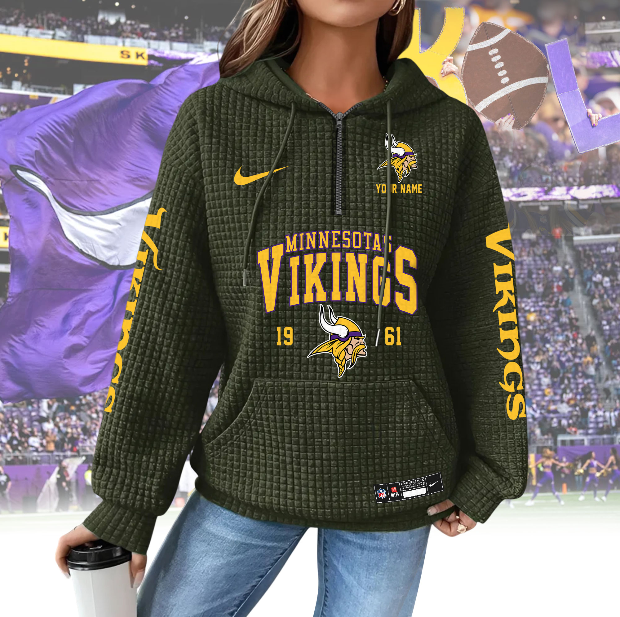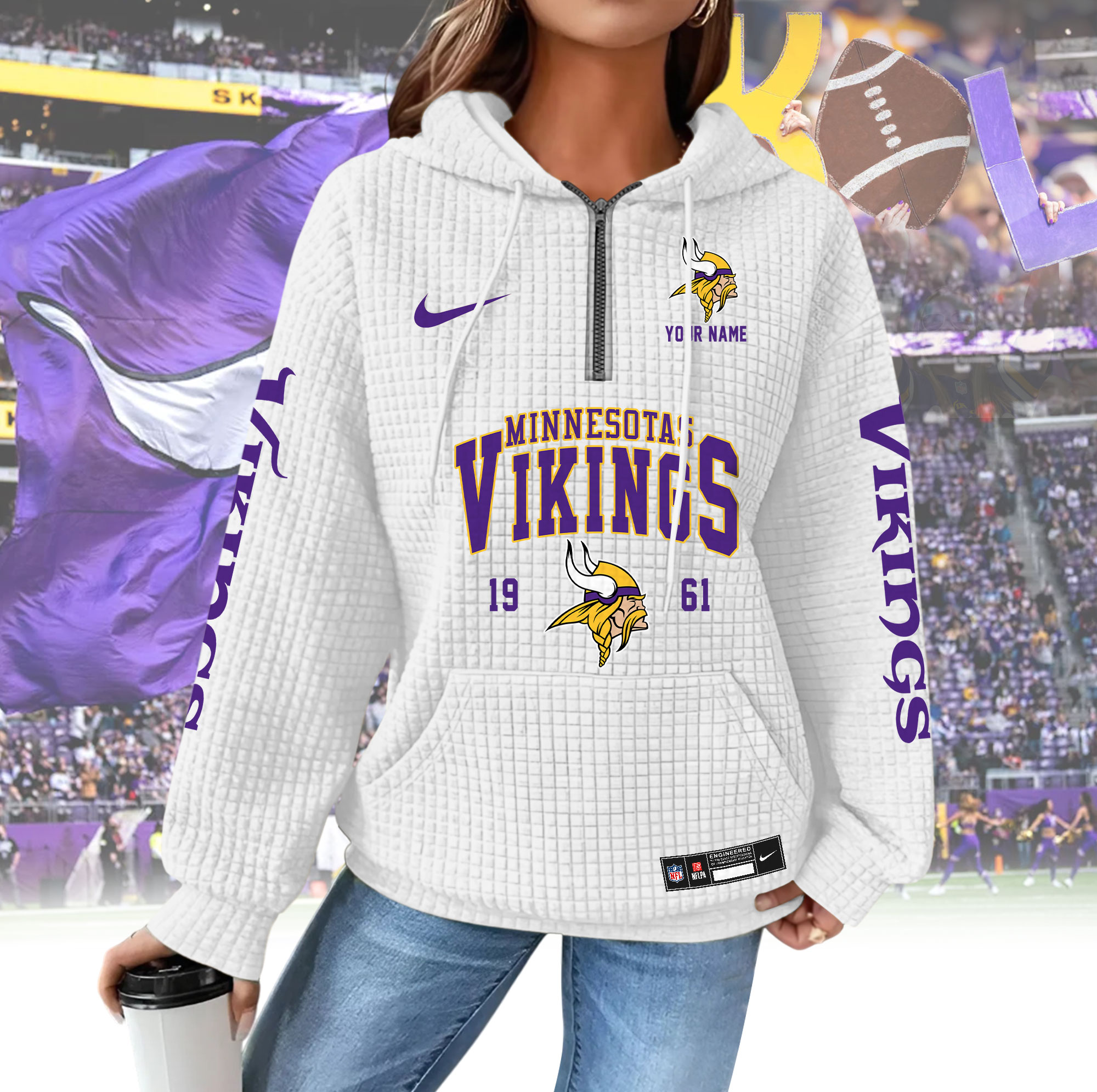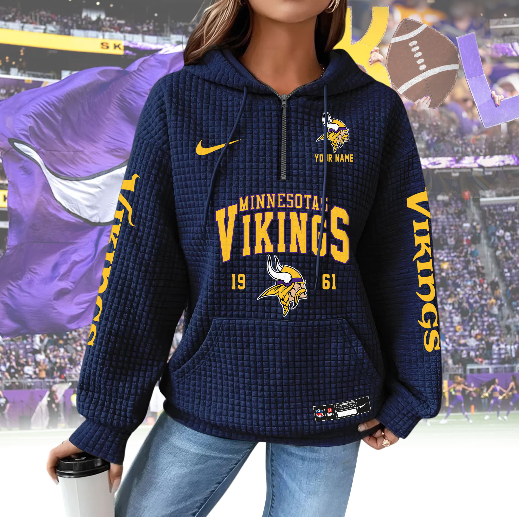 To make your hoodie truly unique, customers can add a custom name to be printed directly on the hoodie, creating a personalized look or a meaningful gift for any NFL fan. Whether you’re buying for yourself or a loved one, the HBZNVM024VIK0409 Woman Hoodie is a stylish, comfortable, and thoughtful choice for game day and beyond.