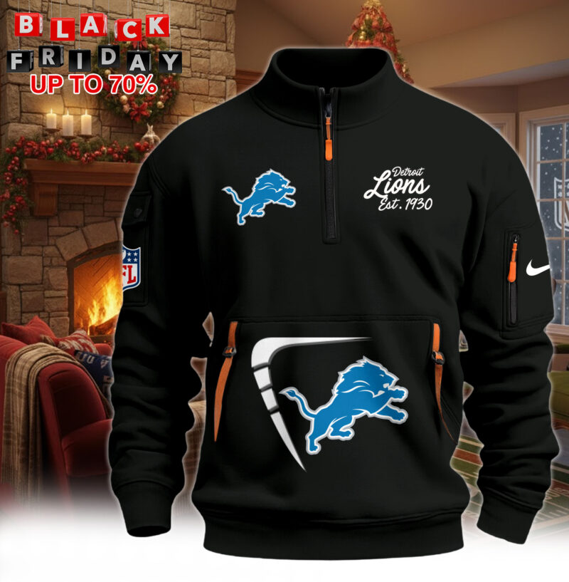 Hot New 2026 Detroit Lions Half-Zip Pullover – Black Winter Edition