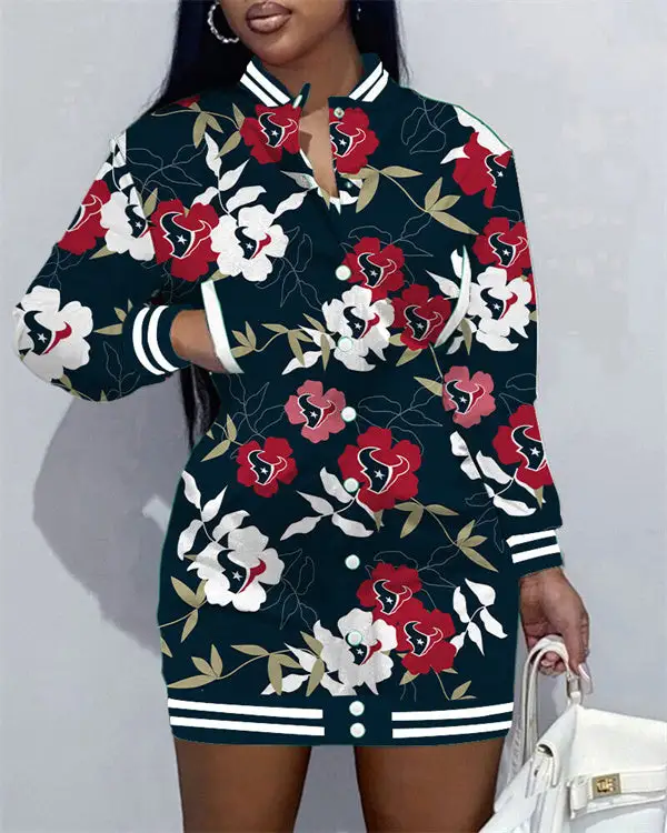 Houston Texans Women Button Down Jacket Dress AZBTBDJD000381