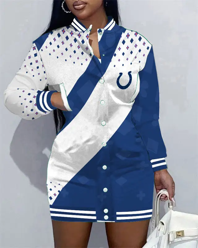 Indianapolis Colts Women Button Down Jacket Dress AZBTBDJD000092