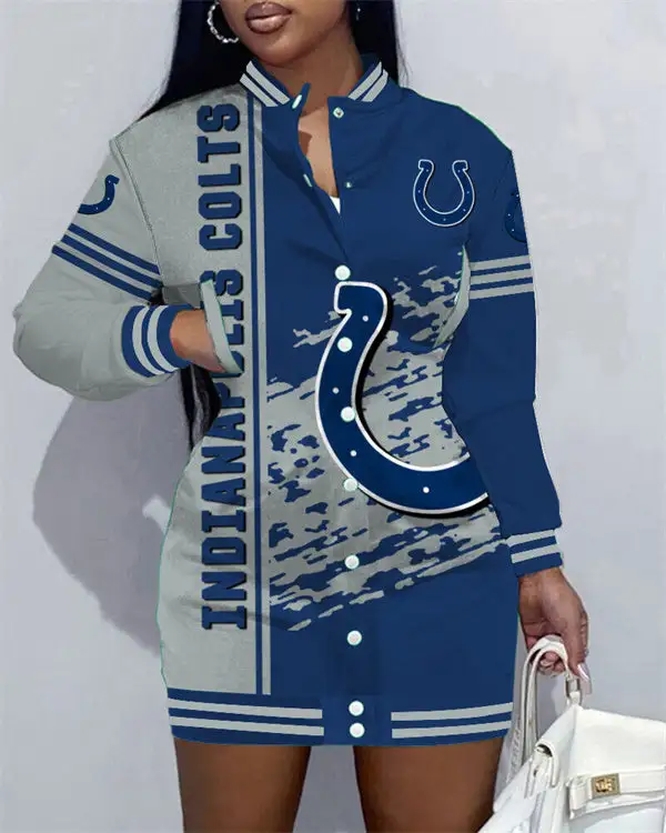 Indianapolis Colts Women Button Down Jacket Dress AZBTBDJD000323