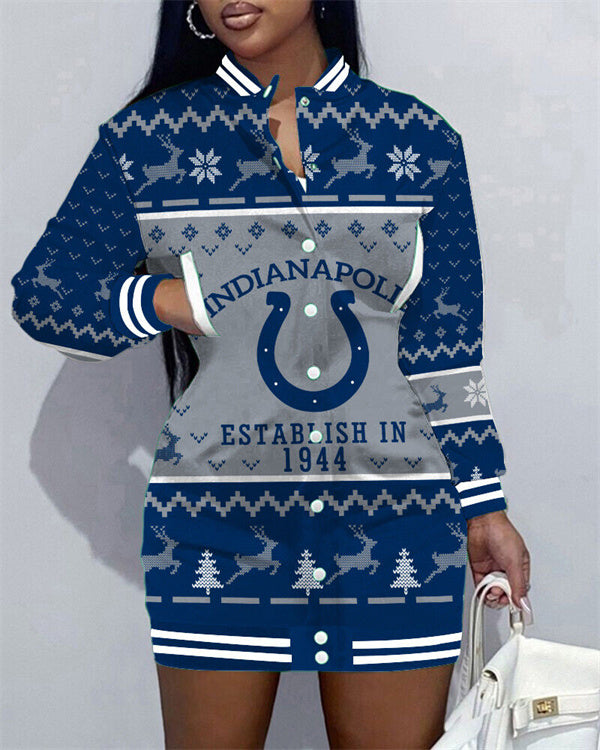 Indianapolis Colts Women Button Down Jacket Dress AZBTBDJD000324