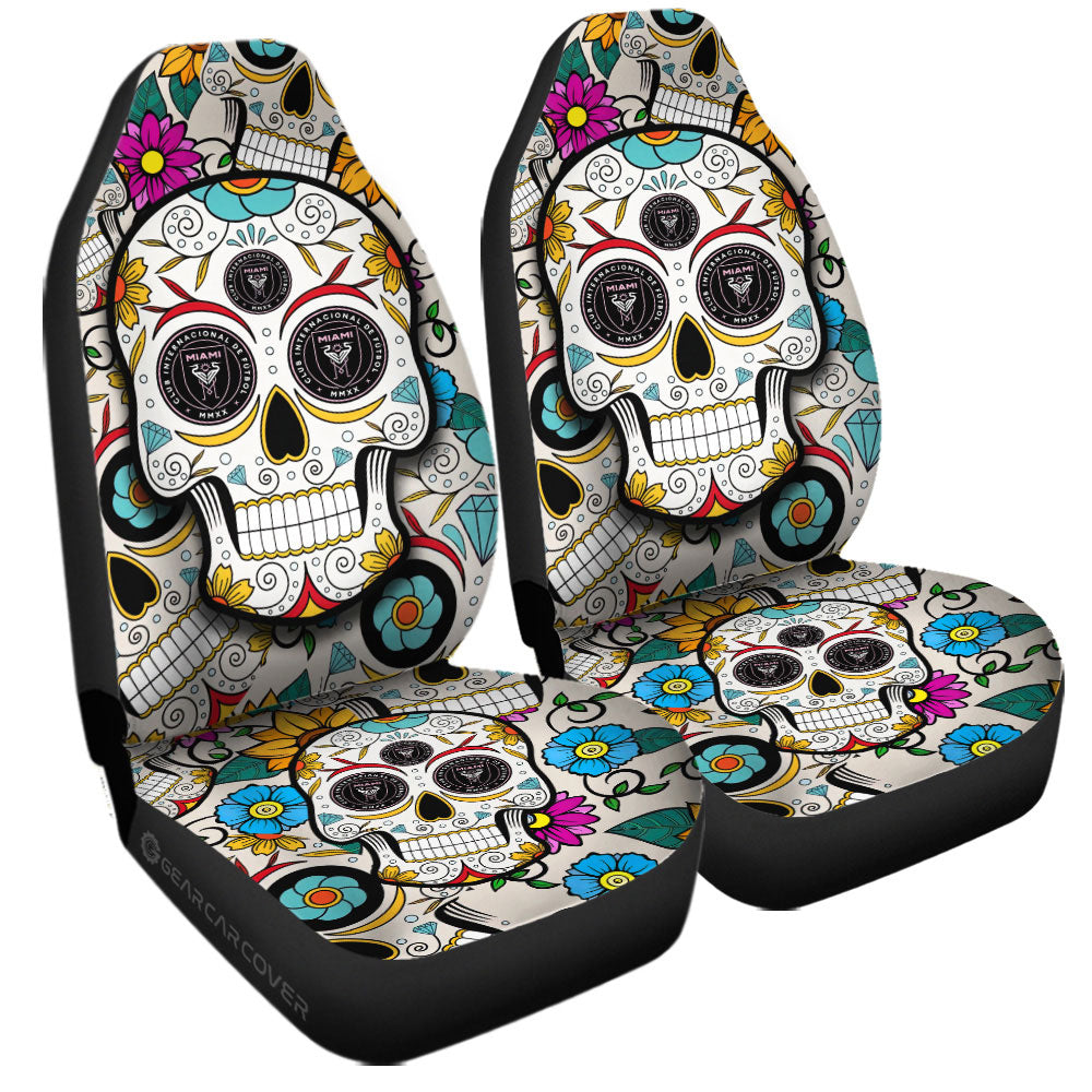 Inter Miami CF Car Seat Covers Custom Sugar Skull Car Accessories