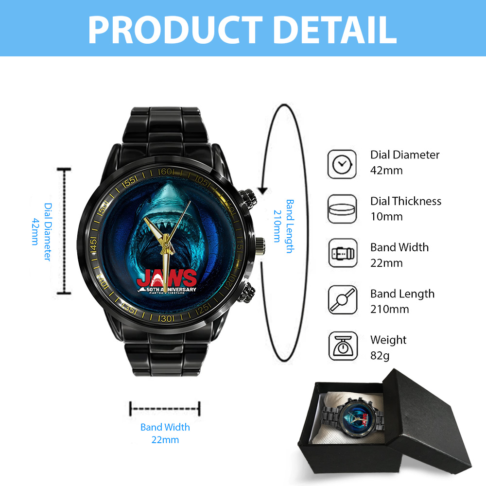 👉 Order your Jaws Black Stainless Steel Watch today and wear a piece of cinematic history on your wrist!