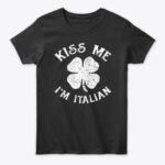 ✔ Playful “Kiss Me I’m Italian” shamrock-themed design