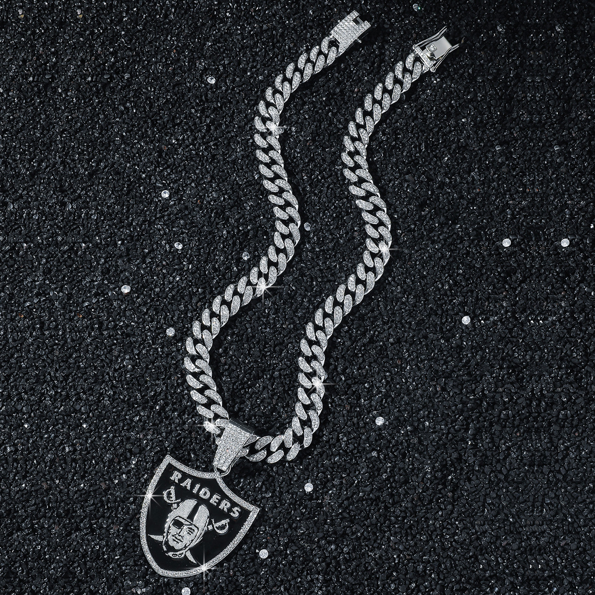 Las Vegas Raiders Hip Hop Iced Out Bling Pendant Cuban Chain