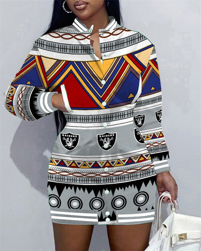 Las Vegas Raiders Women Button Down Jacket Dress AZBTBDJD000056