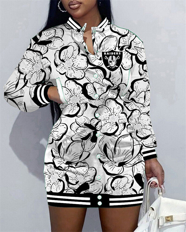 - Show off your Las Vegas Raiders pride in style with this custom Button Down Jacket Dress, designed for die-hard fans who want to make a statement on game day and beyond.