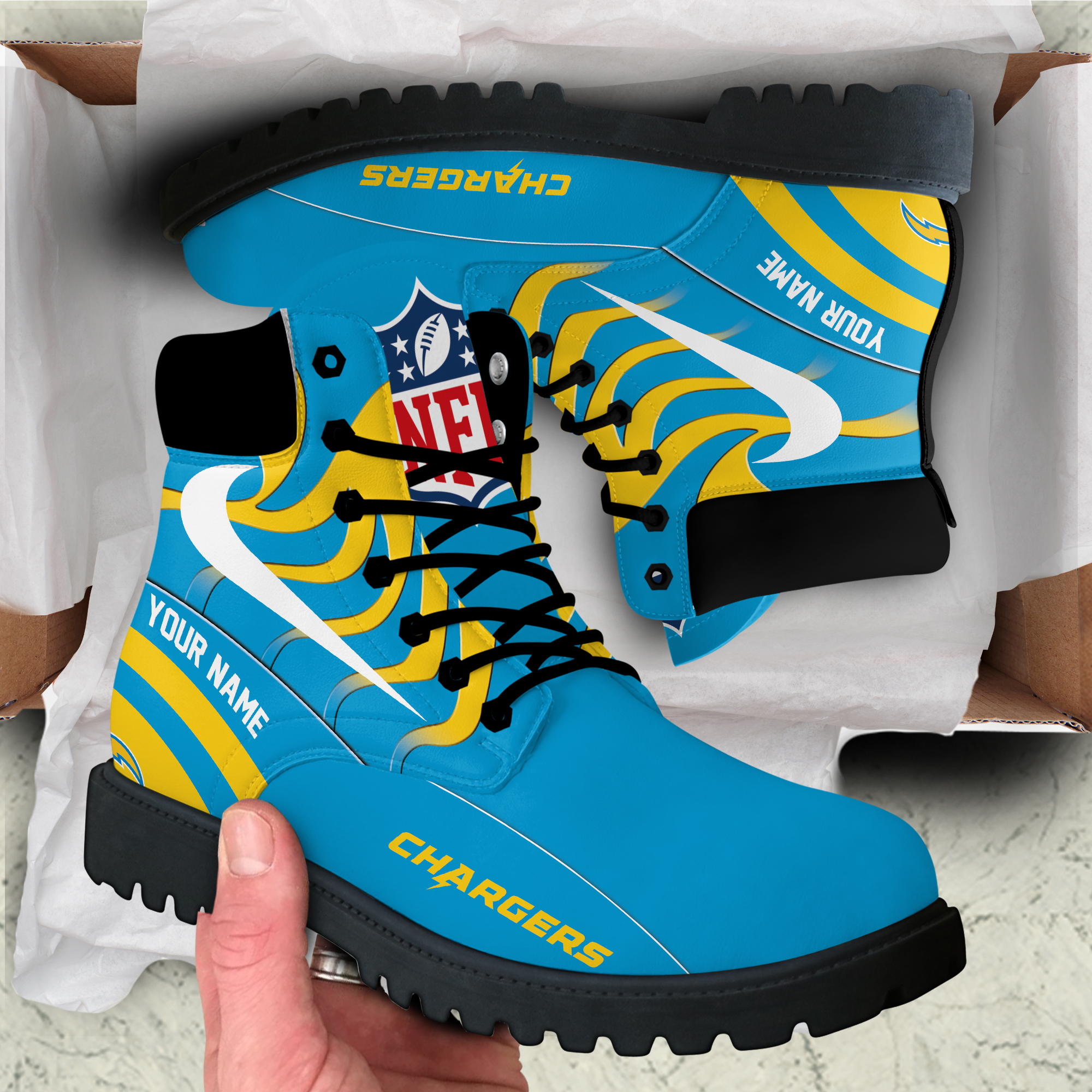 - Your Personal Touch: Add your name or initials to these boots, making them a one-of-a-kind representation of your Chargers dedication.