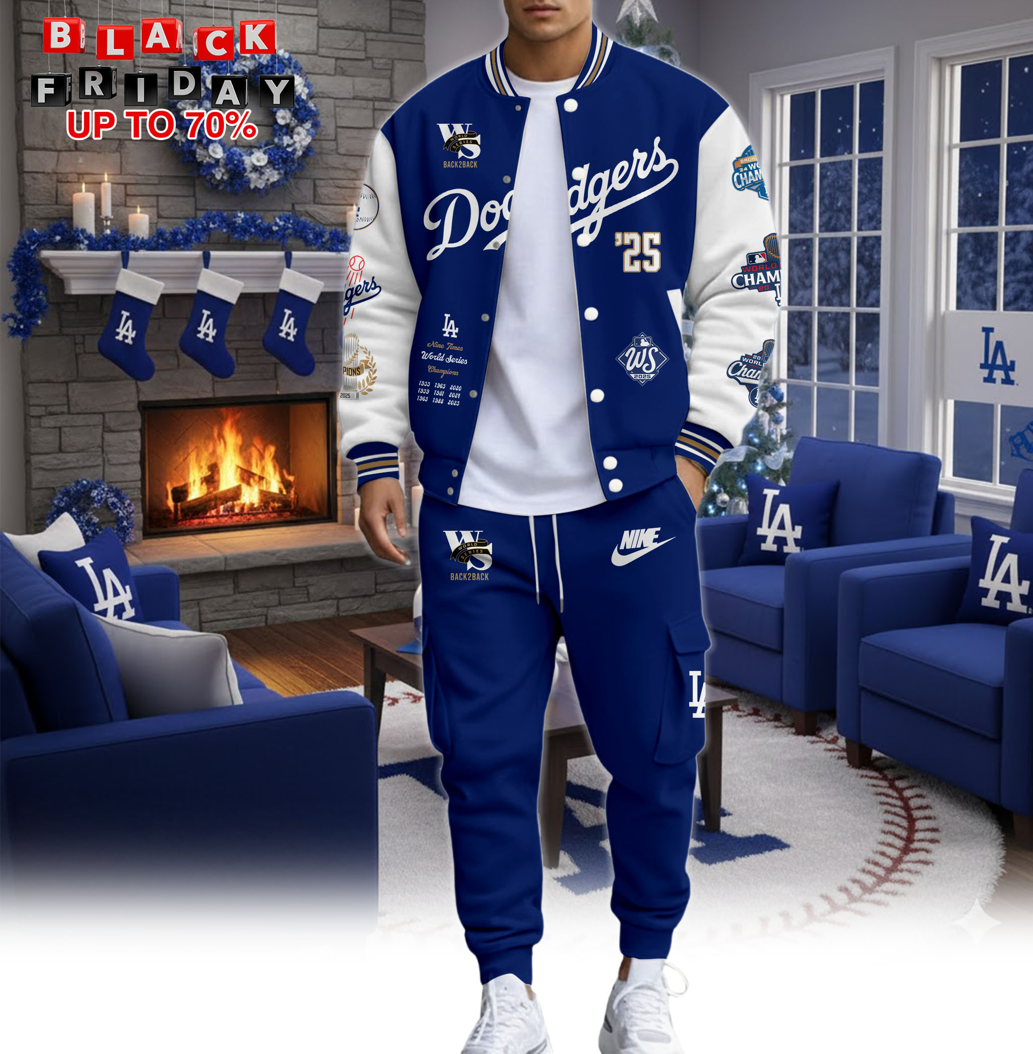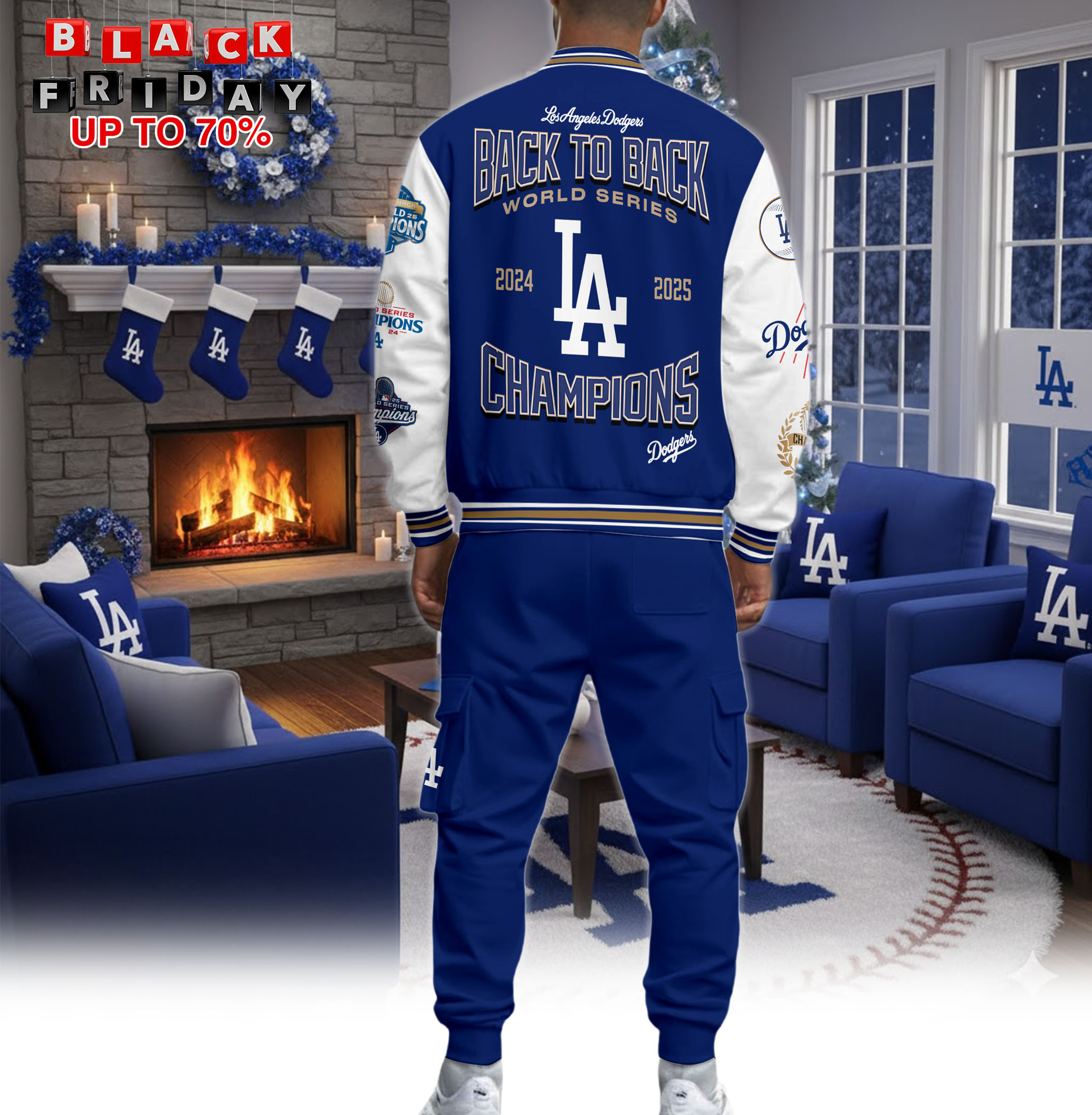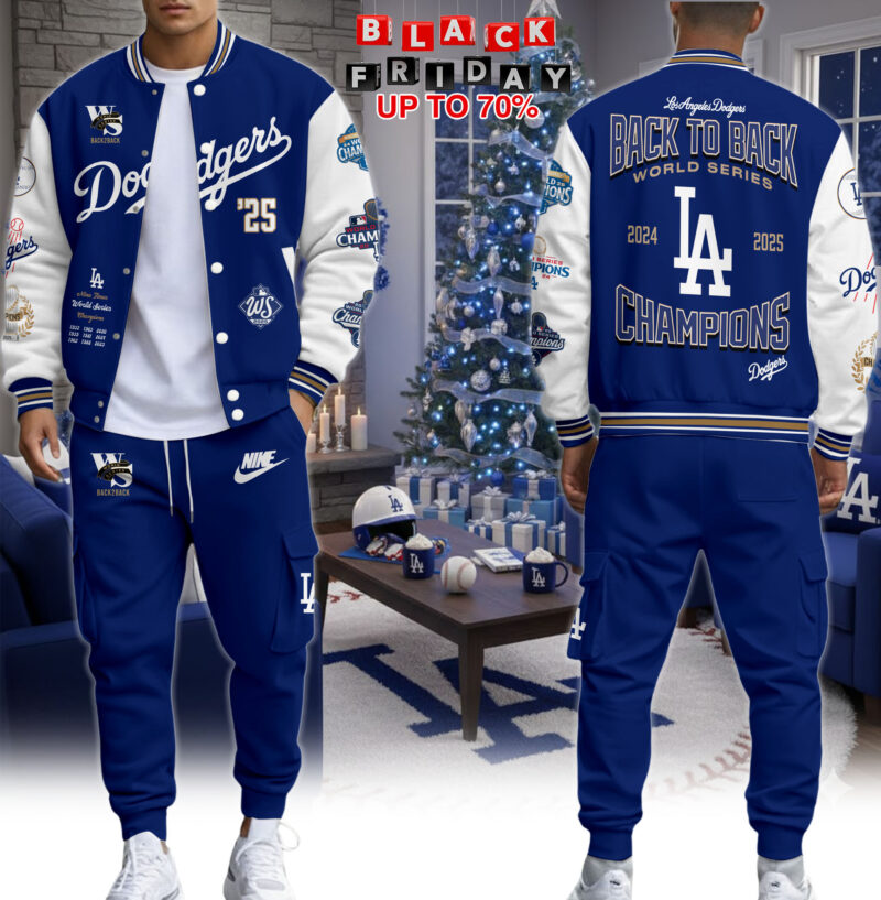 Los Angeles Dodgers Back To Back 2025 World Series Champions Varsity Jacket + Cargo Joggers Set