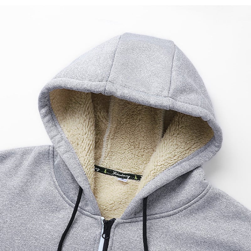 Soft Lamb Wool Lining: The interior features thick lamb wool lining that delivers outstanding warmth and insulation. Its soft texture enhances comfort, making this hoodie perfect for chilly mornings and evenings, keeping you cozy.