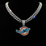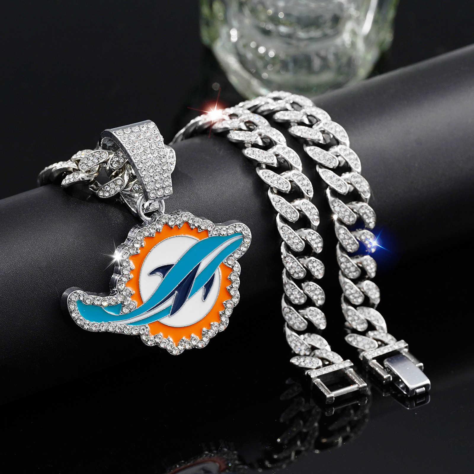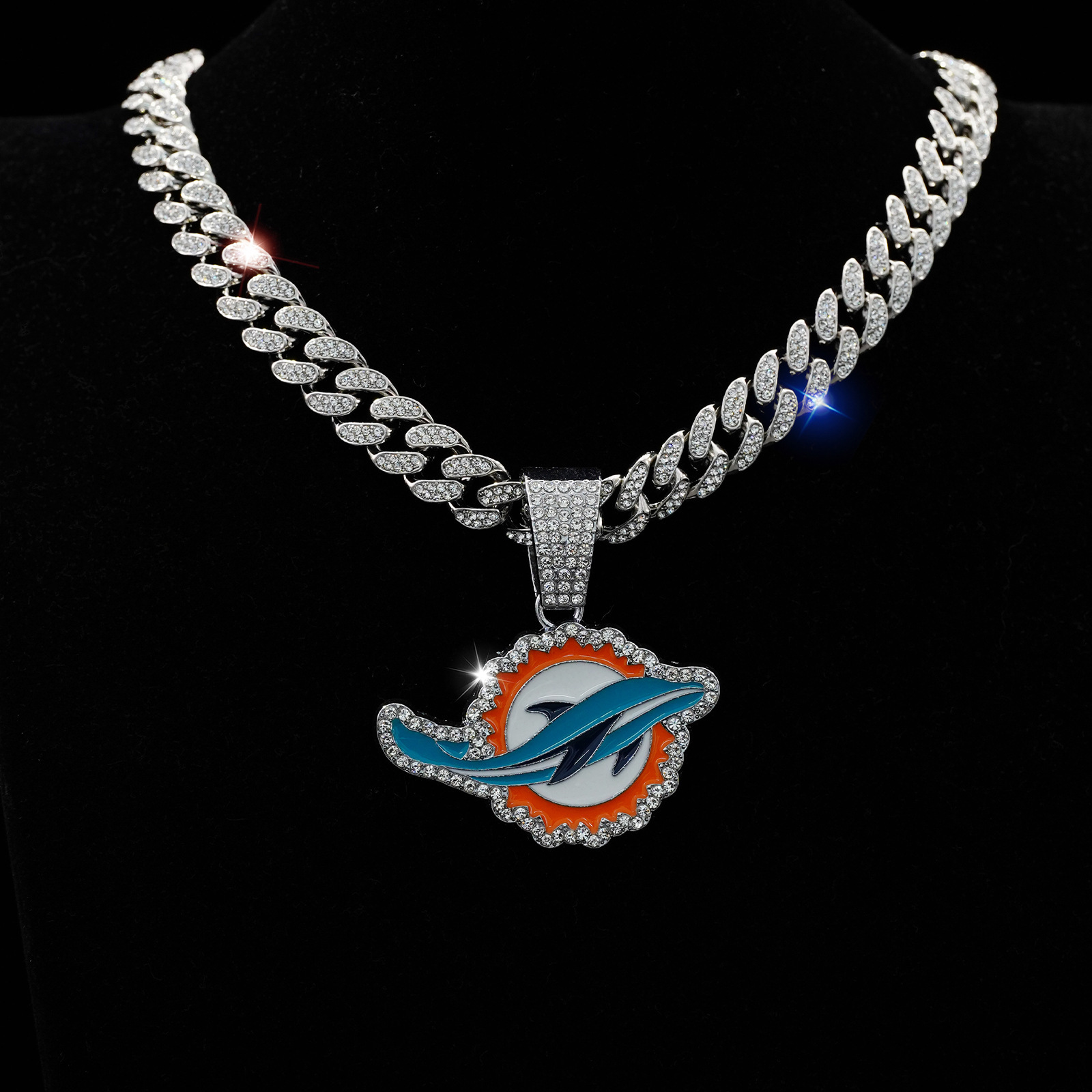 Miami Dolphins Hip Hop Iced Out Bling Pendant Cuban Chain