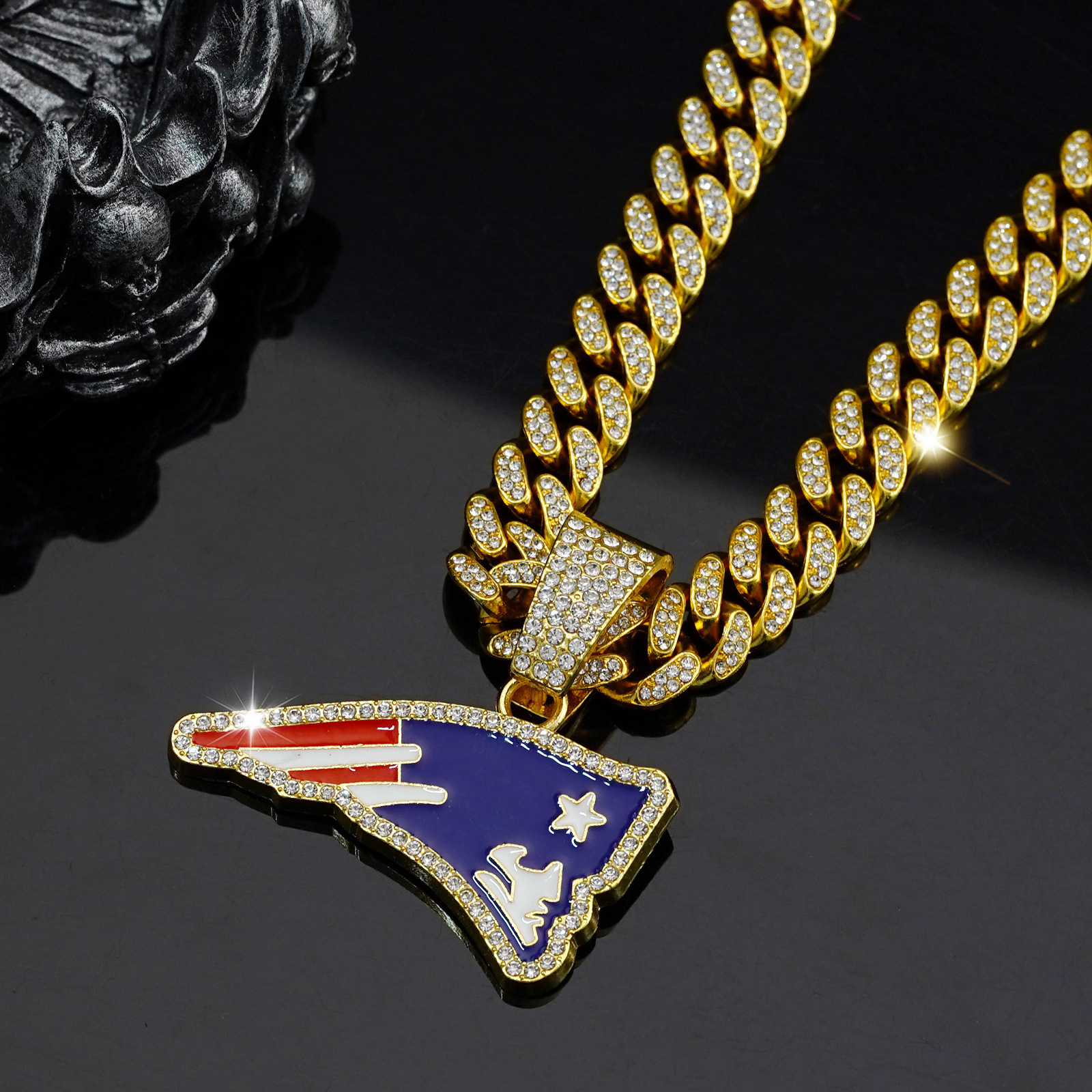 New England Patriots Hip Hop Iced Out Bling Pendant Cuban Chain