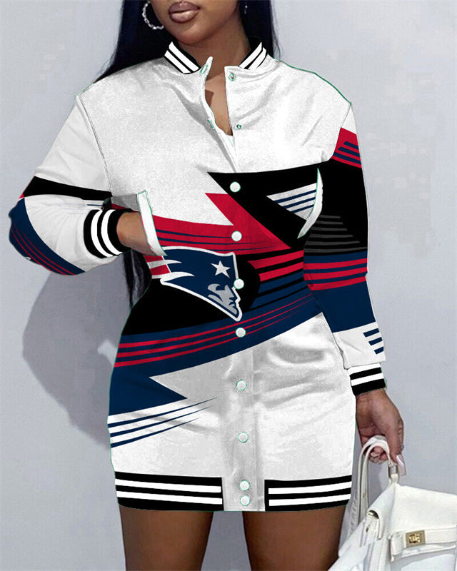 New England Patriots Women Button Down Jacket Dress AZBTBDJD000210