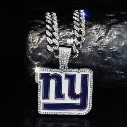 New York Giants Hip Hop Iced Out Bling Pendant Cuban Chain