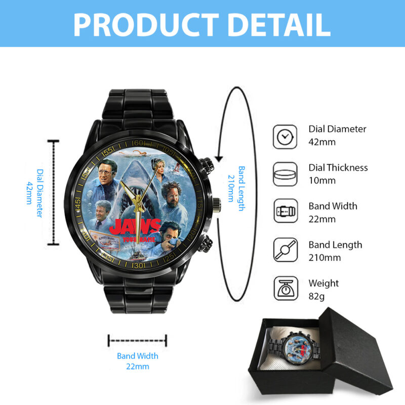 👉 Order your Jaws Black Stainless Steel Watch today and wear a piece of cinematic history on your wrist!