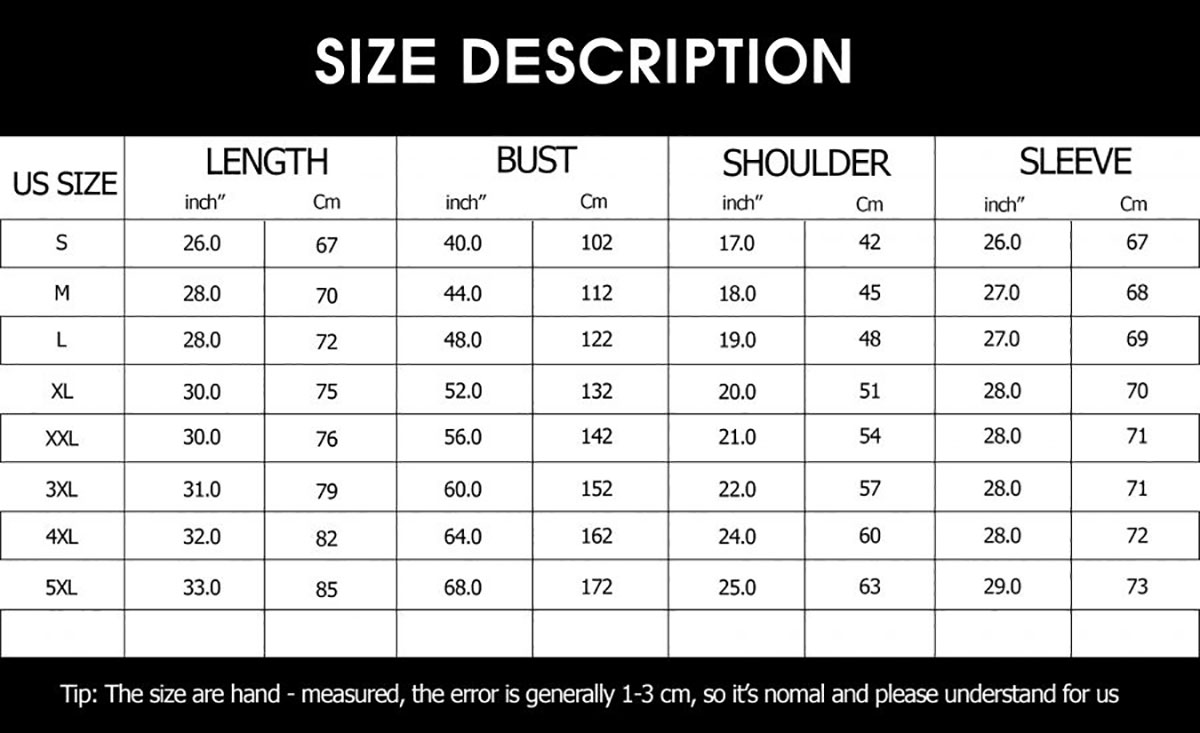 Size: S, M, L, XL, 2XL, 3XL, 4XL, 5XL