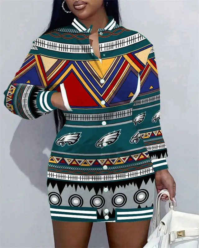 Philadelphia Eagles Women Button Down Jacket Dress AZBTBDJD000086