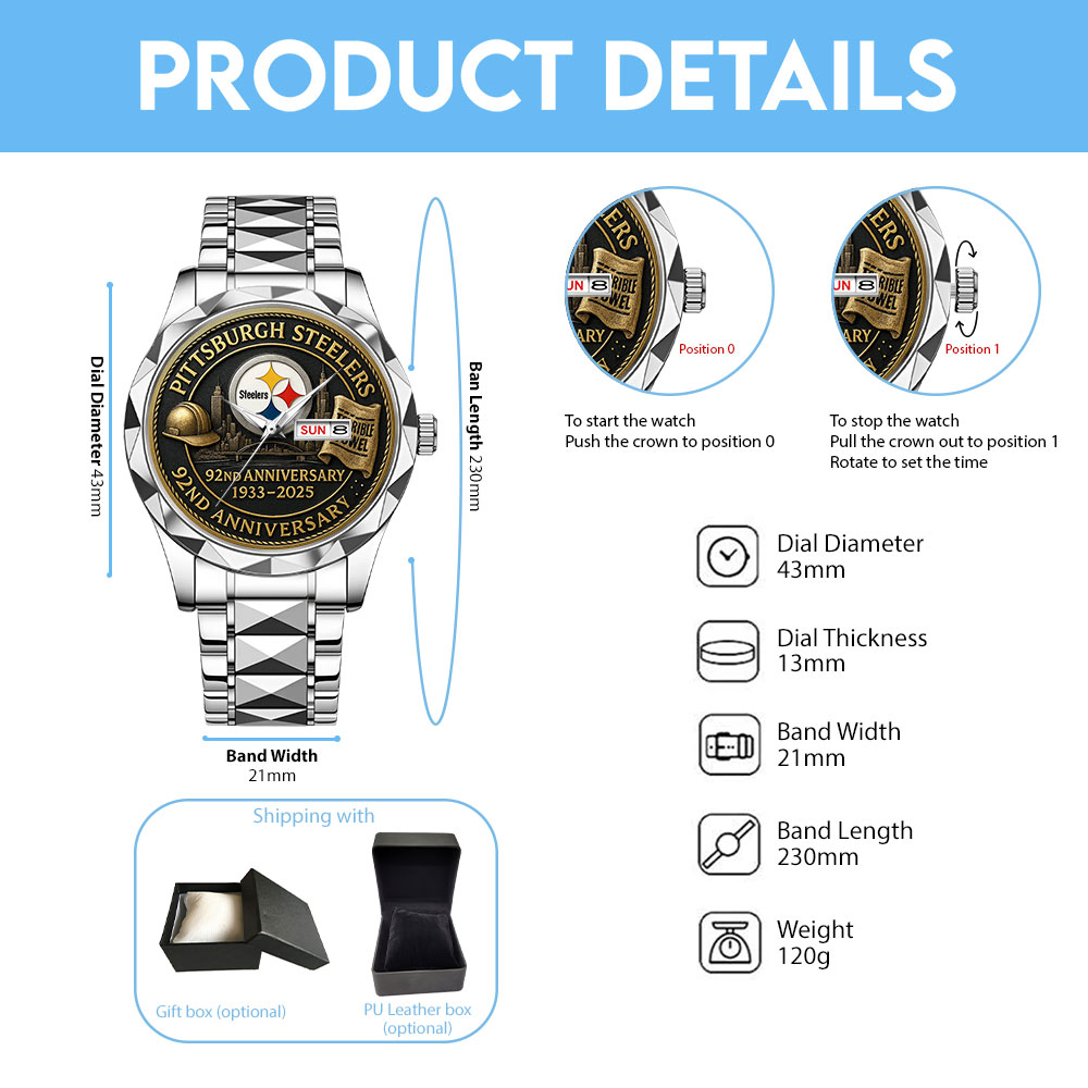 Pittsburgh Steelers 92nd Anniversary Alloy Luxury Quartz Watch – MAITM12901