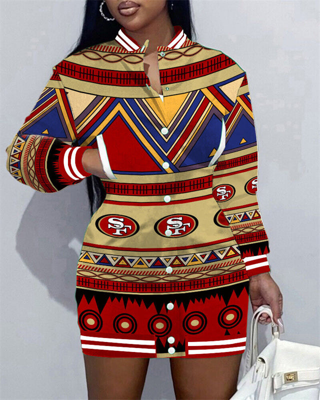 San Francisco 49ers Women’s Button Down Jacket Dress – Stylish Fan Gear for Every Occasion!