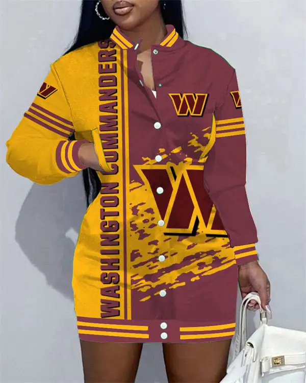 Washington Commanders Women Button Down Jacket Dress AZBTBDJD000060