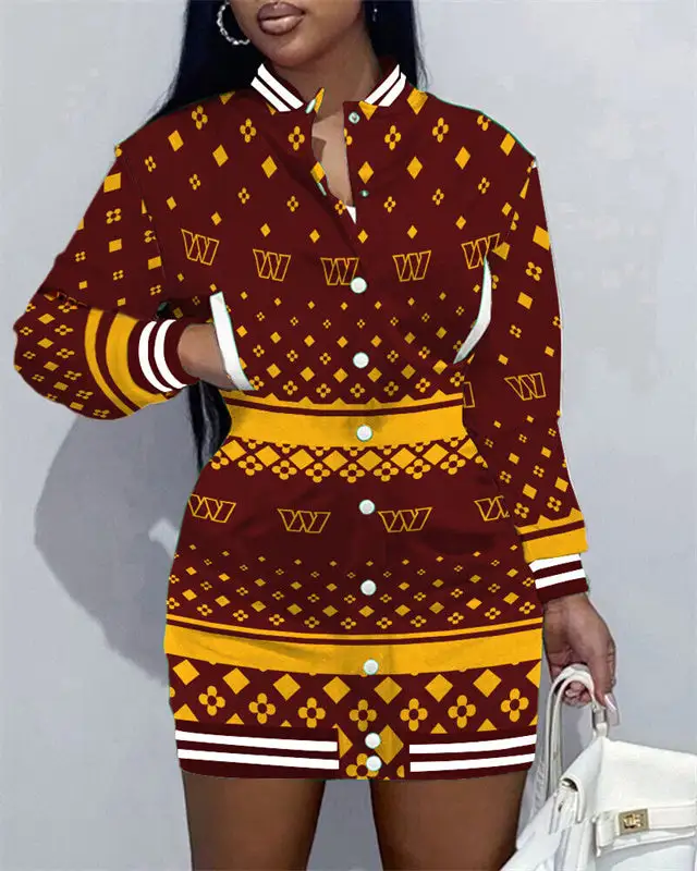 – Elevate your game day outfit with this Custom Washington Commanders Jacket Dress, the ultimate NFL fan gear and a perfect gift for any sports fan.