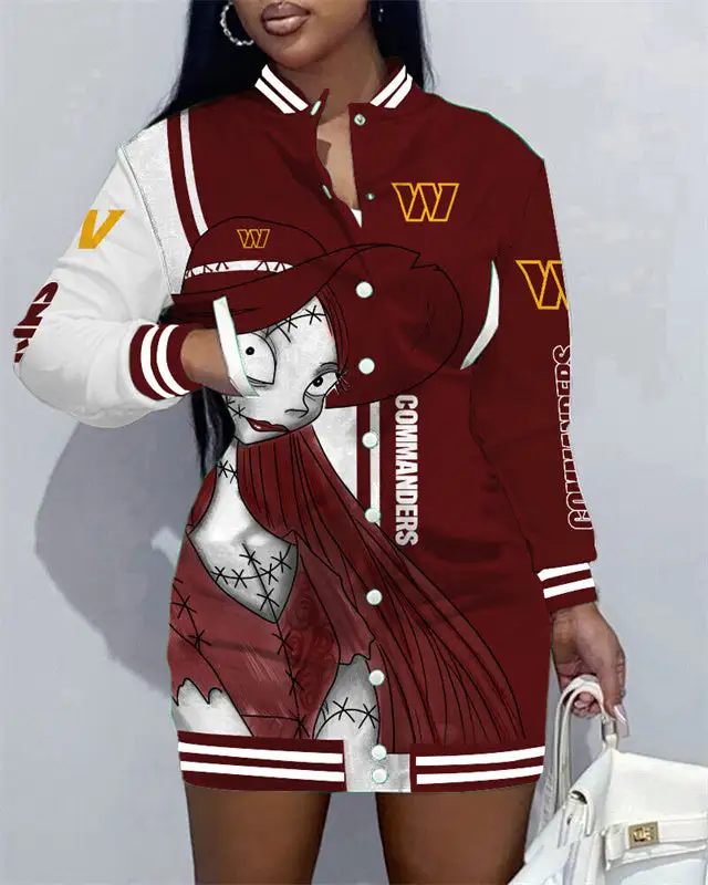– Elevate your game day outfit with this Custom Washington Commanders Jacket Dress, the ultimate NFL fan gear and a perfect gift for any sports fan.