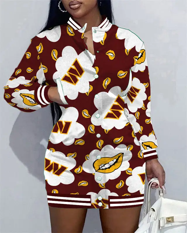 Washington Commanders Women Button Down Jacket Dress AZBTBDJD000066